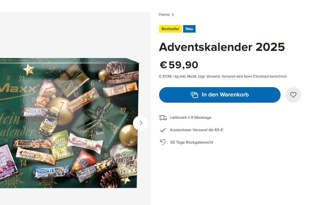 Die IronMaxx für nur 29.99 € kostet sogar auf der offiziellen Website 59.90 €, ja, siehe sogar im Bild, einfach die Hälfte bei Aldi, und das wahrscheinlich in ganz Deutschland, das coole daran ist, die sind nicht sofort ausverkauft, die Regale sind immer noch voll und auf Lager gibt es immer noch, deswegen jetzt zu schnappen, denn Mitte November gehts los mit der Adventskalender Jagt.